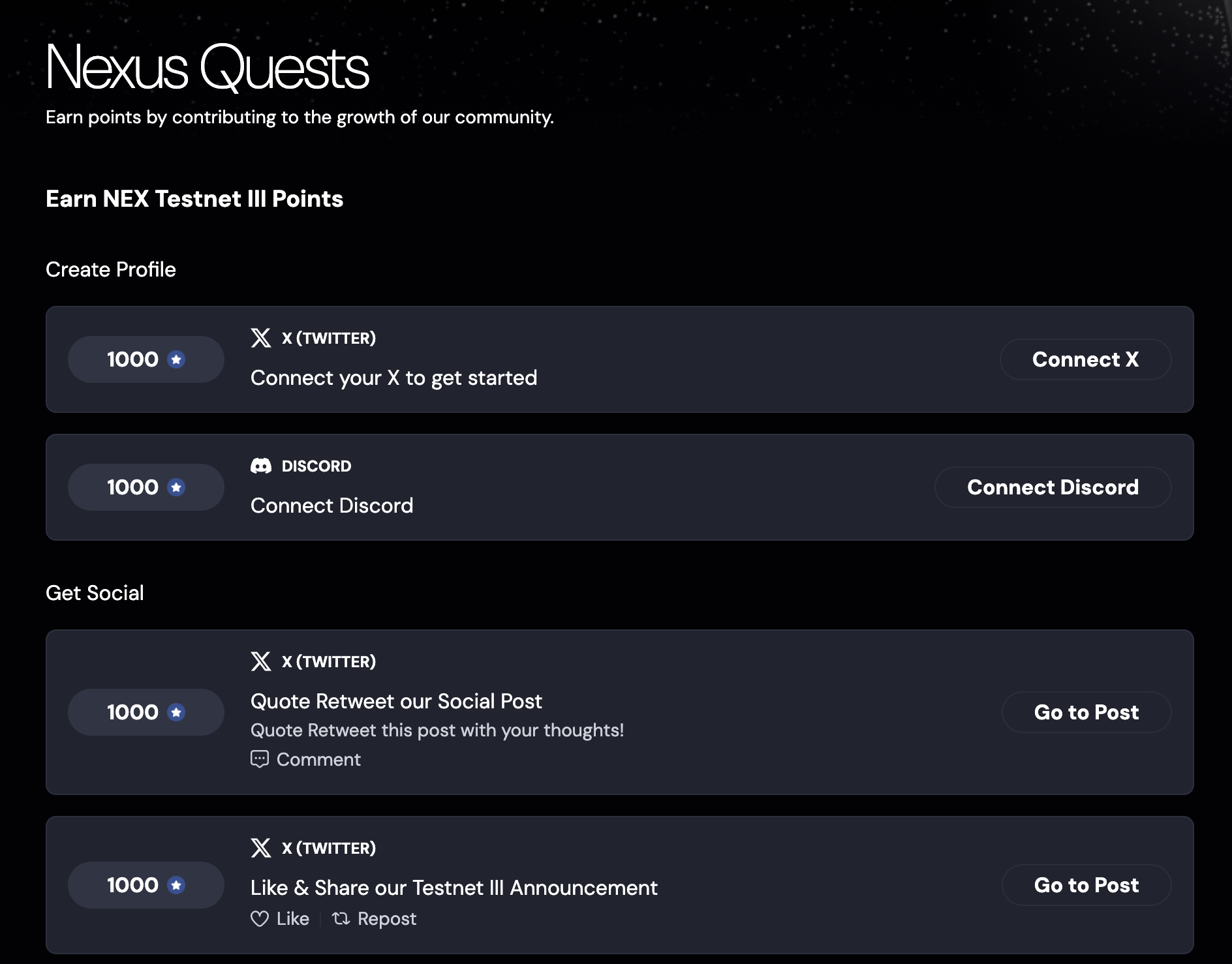 Every quest you complete converts to points in our Testnet III economy. For the time being, every point earned on Snag is equal to a NEX Testnet III point. It's a 1:1 ratio, and Nexus will send out point balances weekly.