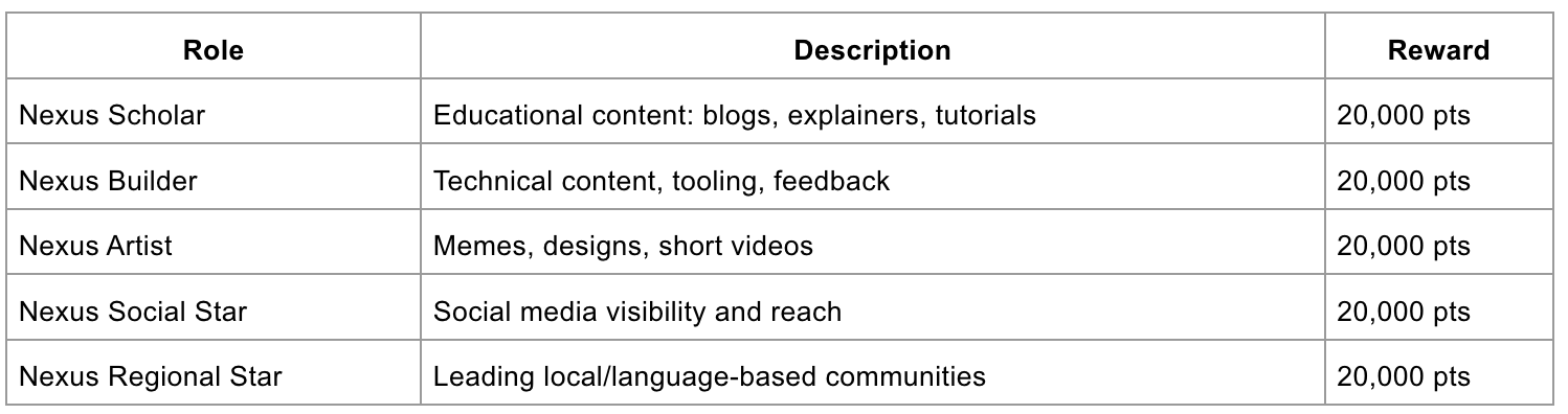 Over the past few months, we’ve seen incredible energy and commitment from contributors across the ecosystem. From thoughtful blog posts to community events, viral memes, and technical support and you’ve shown what it means to build Nexus together. Now, it's time to reward that effort.