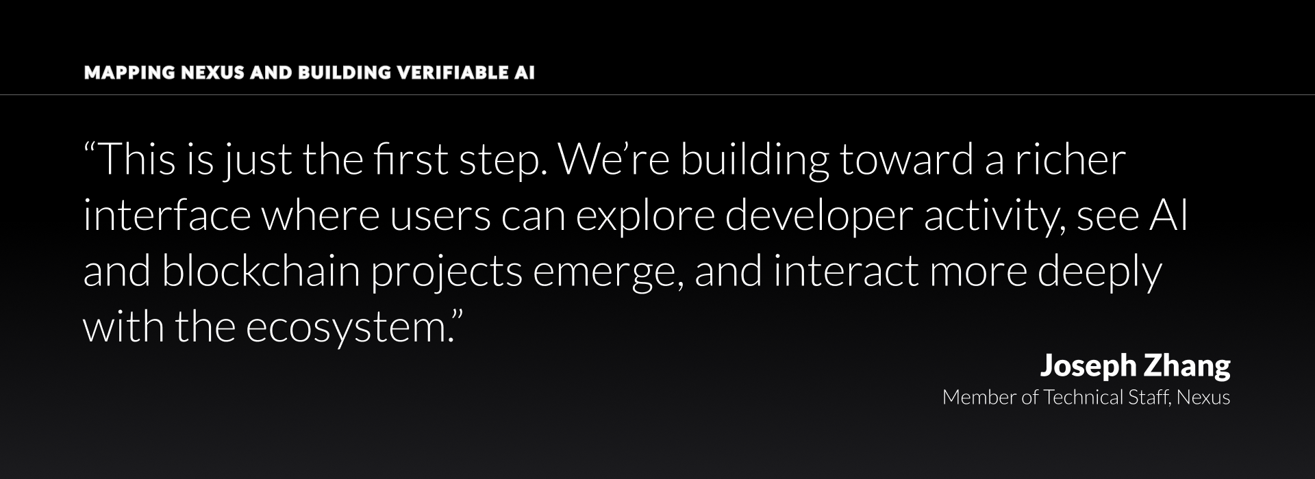 Joseph’s background in AI also plays directly into what’s next at Nexus. With the launch of the Verifiable AI Lab, the team is beginning to integrate AI into both the network interface and its underlying architecture.